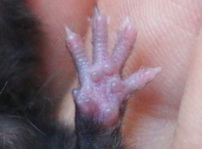 Na koniec zdjęcie samiczki black, u której dodatkowy paznokieć wygląda prawie jak futerko na łapce.