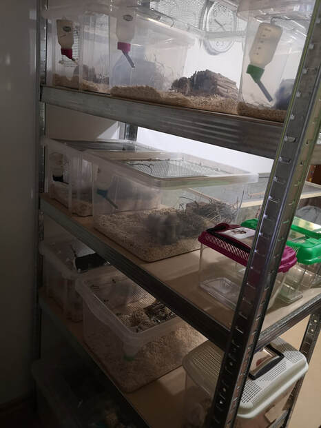 W nim będzie mieszkać nasze stado główne. Dorastające samiczki, na odpoczynku hodowlanym lub oczekujące na nowy dom, również ewentualne emerytki. W tym rodzaju lokum myszki mają czuć się jak najlepiej i być szczęśliwe. :)
