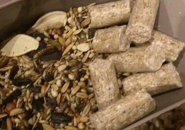 Pewna podstawa - granulat, stanowiący przynajmniej 80% żywienia + dodatki: nasiona, przysmaki, świeżynki.