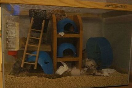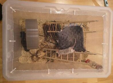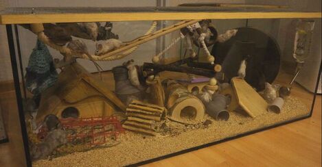 W nim będzie mieszkać nasze stado główne. Dorastające samiczki, na odpoczynku hodowlanym lub oczekujące na nowy dom, również ewentualne emerytki. W tym rodzaju lokum myszki mają czuć się jak najlepiej i być szczęśliwe. :)