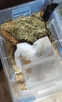 Przy większej ilości myszy jest to jeszcze ważniejszy aspekt. Jeśli chodzi o ściółkę mamy tu całkowitą dowolność i warto wypróbować różne produkty na własną rękę (sugerując sięlistą polecanych ściółek). Każdemu może podpasować co innego. Należy tylko uważać na ściółki pylące, które mogą podrażniać oczy i drogi oddechowe myszy.
